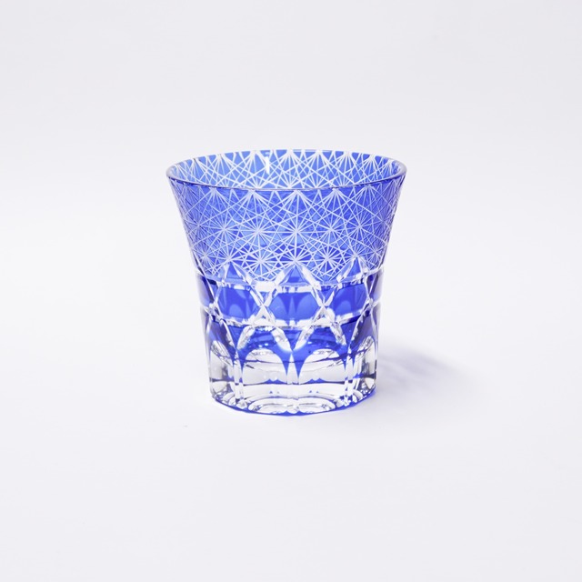 【切子グラス】伝統菊繋 反オールド ダークブルー
