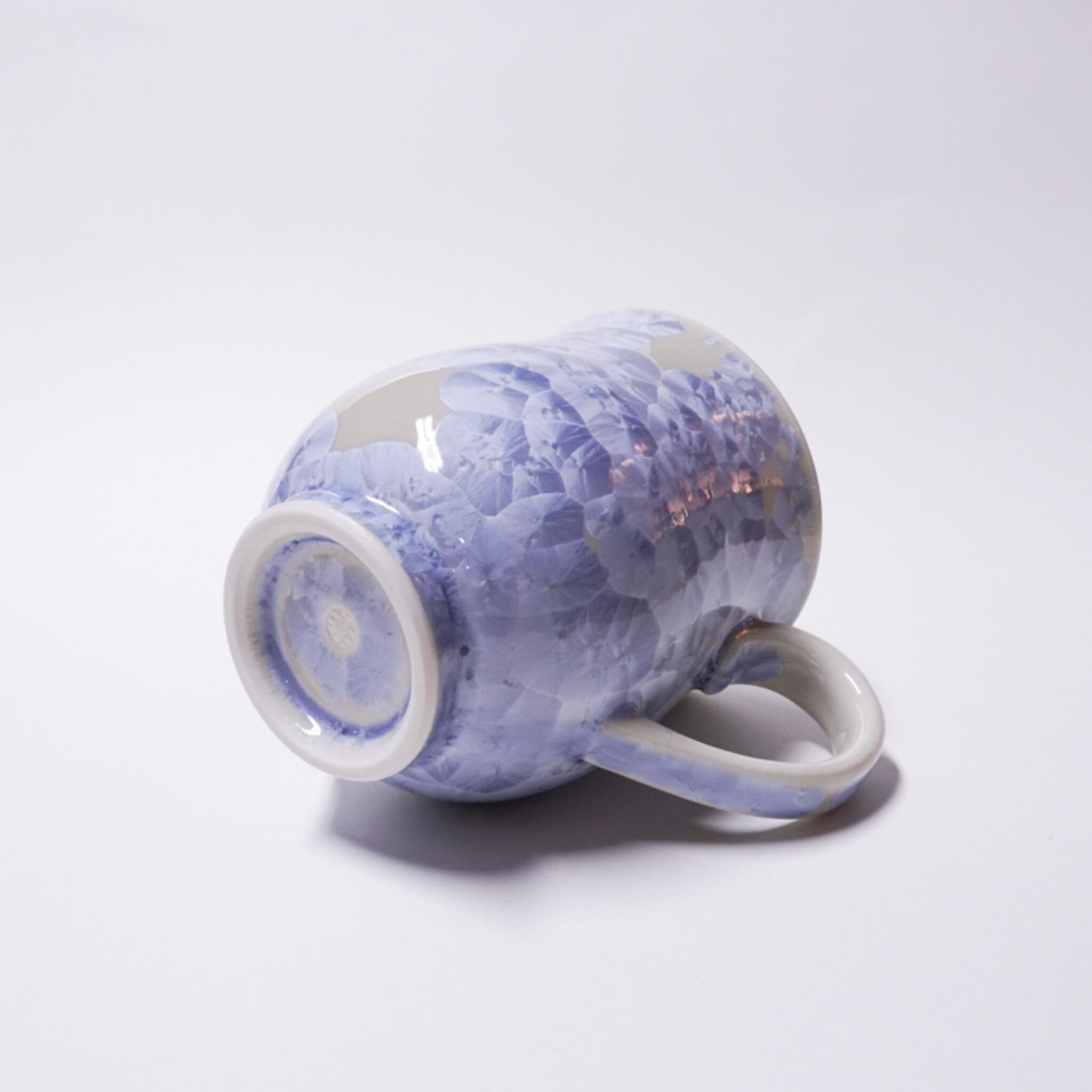 釉薬の結晶が花が咲いたように見えるマグカップ。
