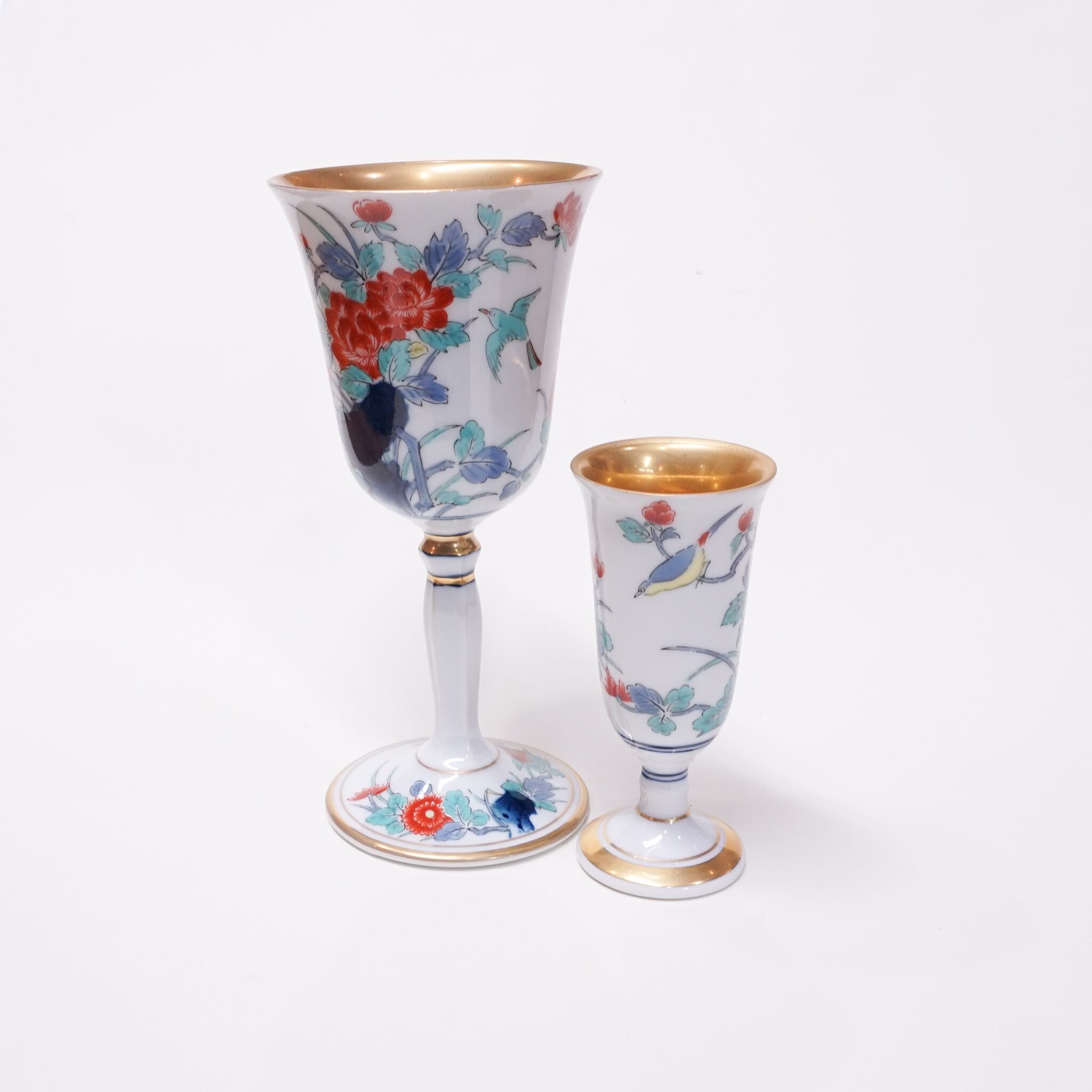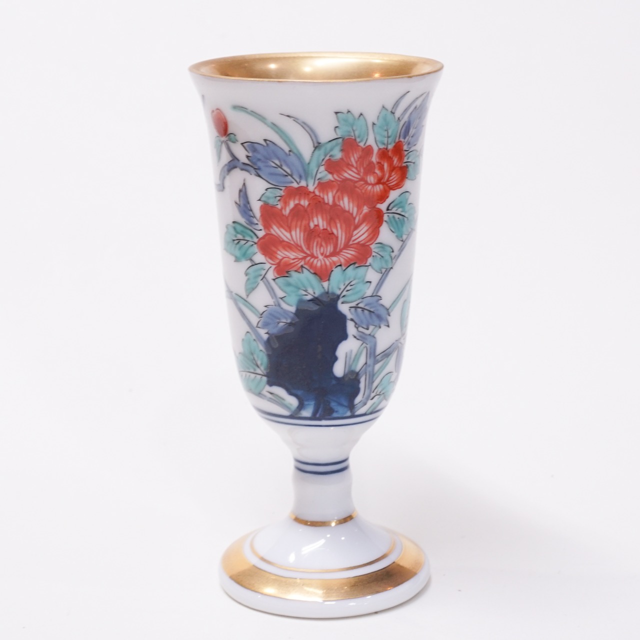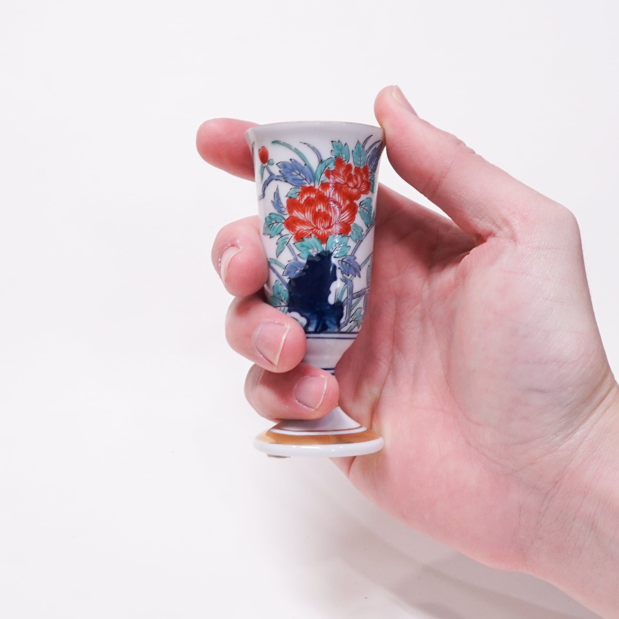 【其泉窯】染錦牡丹文 ワインカップ 小