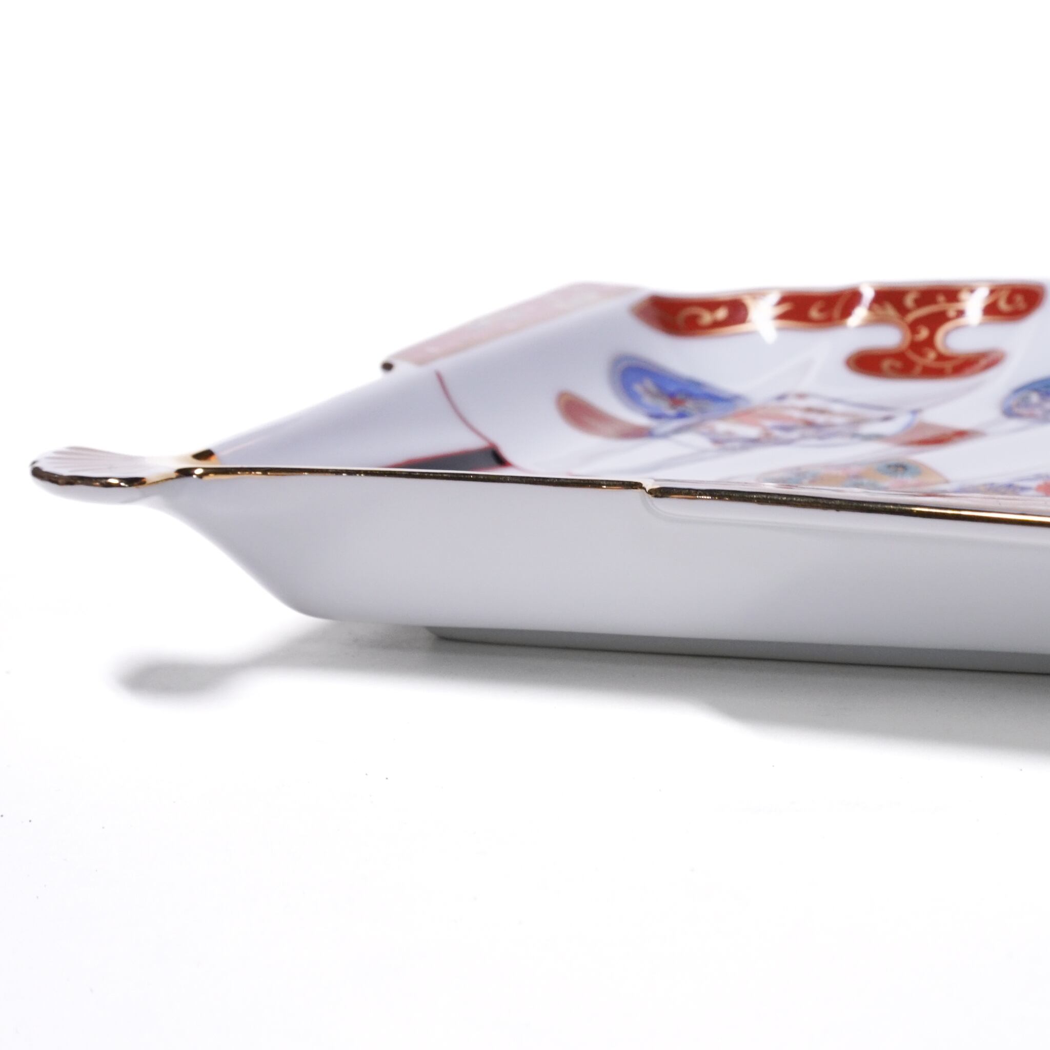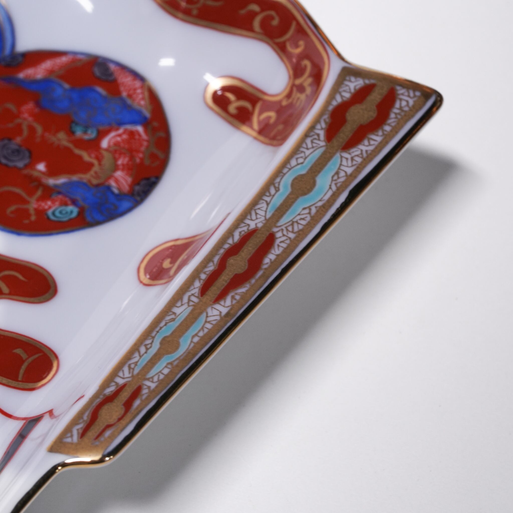 鳳凰は古来より神聖な鳥として崇められており、形状だけでなく模様にも縁起物のモチーフを詰め込んだ、お祝いの席にぴったりのうつわになっています。
