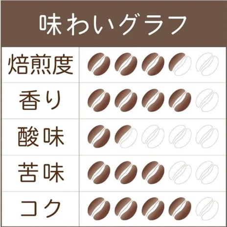 【酸味】奥に感じた熟したシトリック系フルーツの持つジューシーな酸はほぼ感じない。ストーンフルーツ系の硬い印象の酸も存在するが、これもローストにより消えている。モカマタリのもつ酸の個性は消えているが、その分甘味へと進化しそれが個性へと変貌しています。