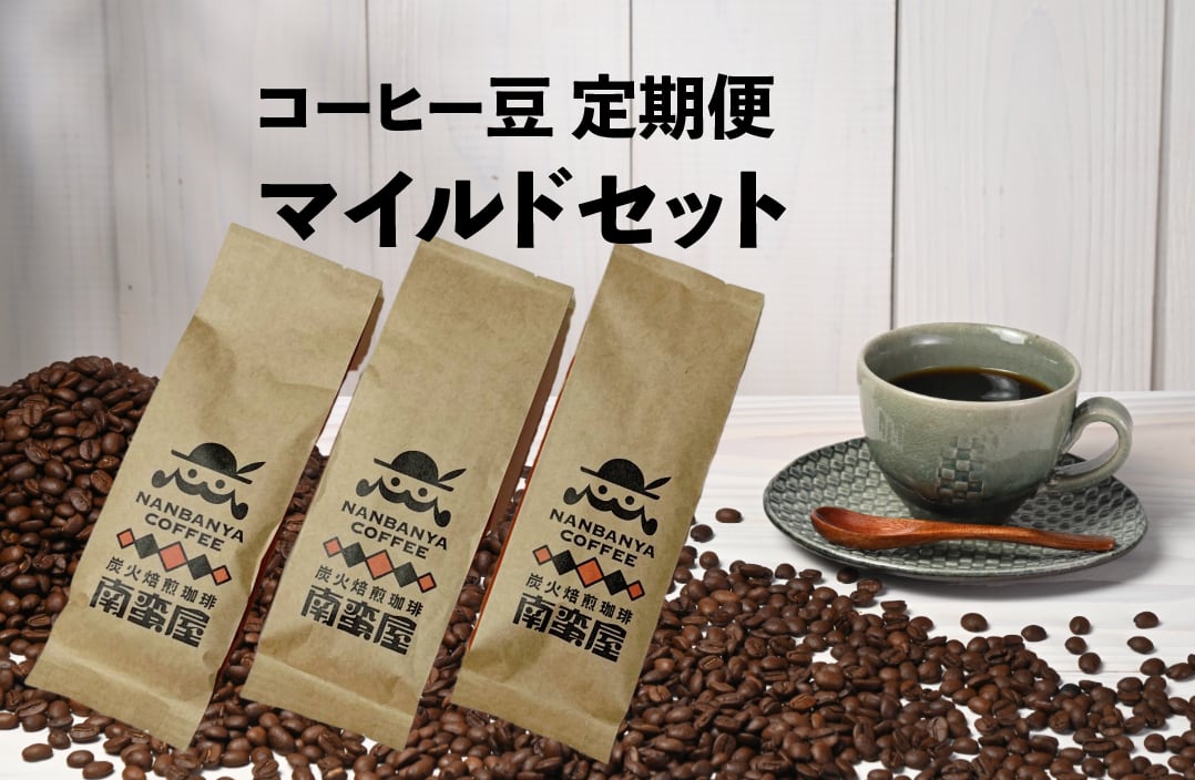 当店おすすめで、人気の浅煎りでマイルドなコーヒー豆(カリブのサンセットコーヒー、雲上のグァテマラ、エチオピアンモカ)3種類を100gずつセットにして、月に一度の定期便でお届けします。