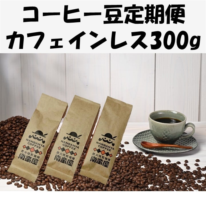 当店おすすめのコーヒー豆であるカフェインレスコーヒー300gを、月に一度の定期便でお届けします。