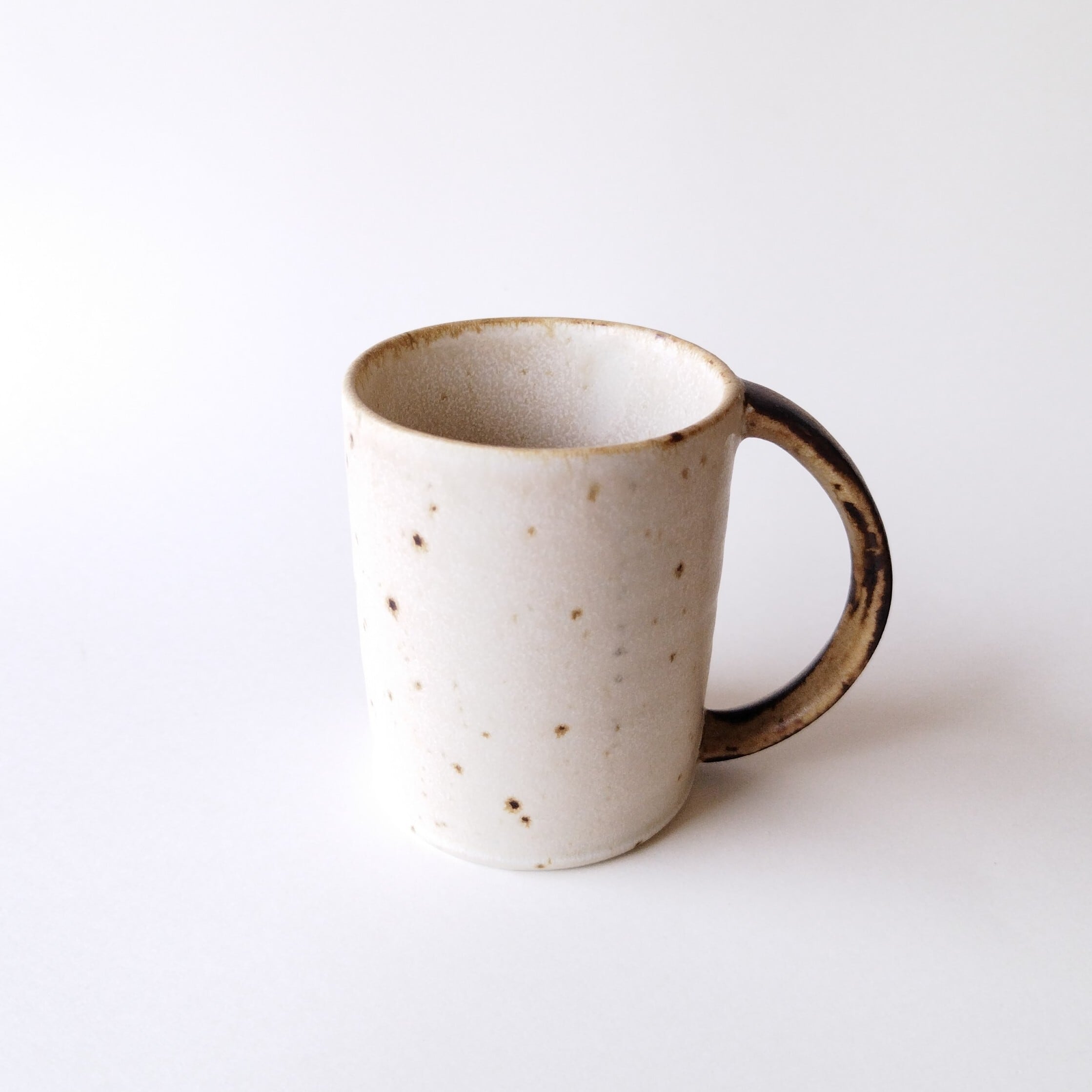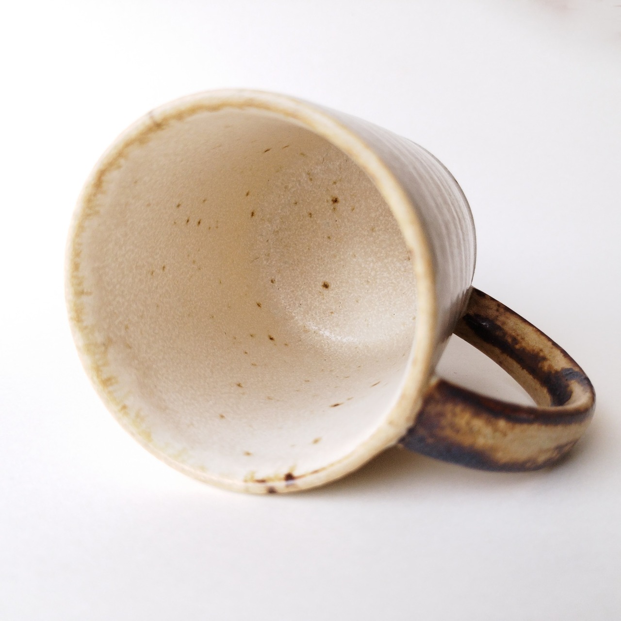 すとんとしたシルエットと大きく付いた取っ手が特徴的なシロンの切立マグカップ。