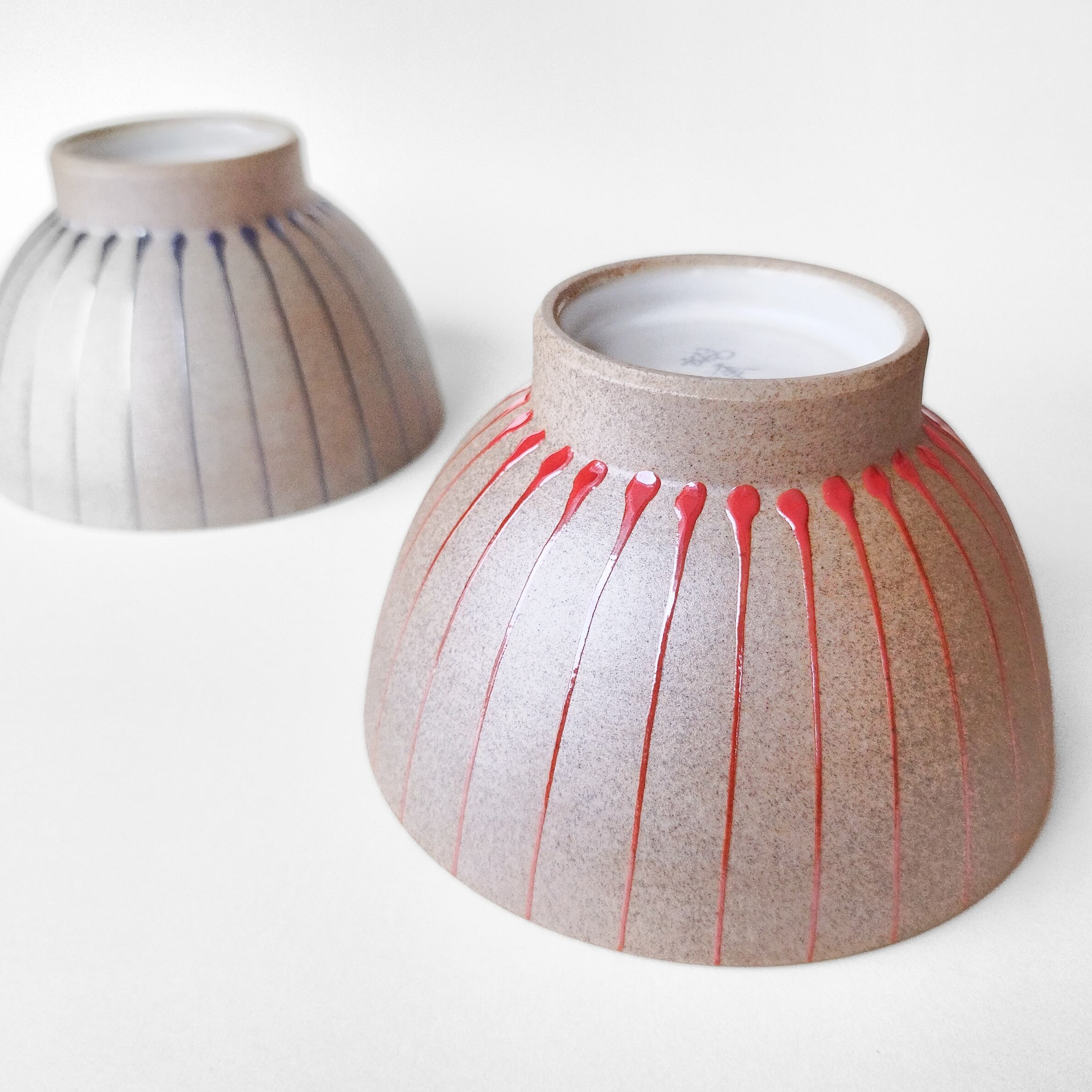 貝殻ストライプのお茶碗【青・赤】