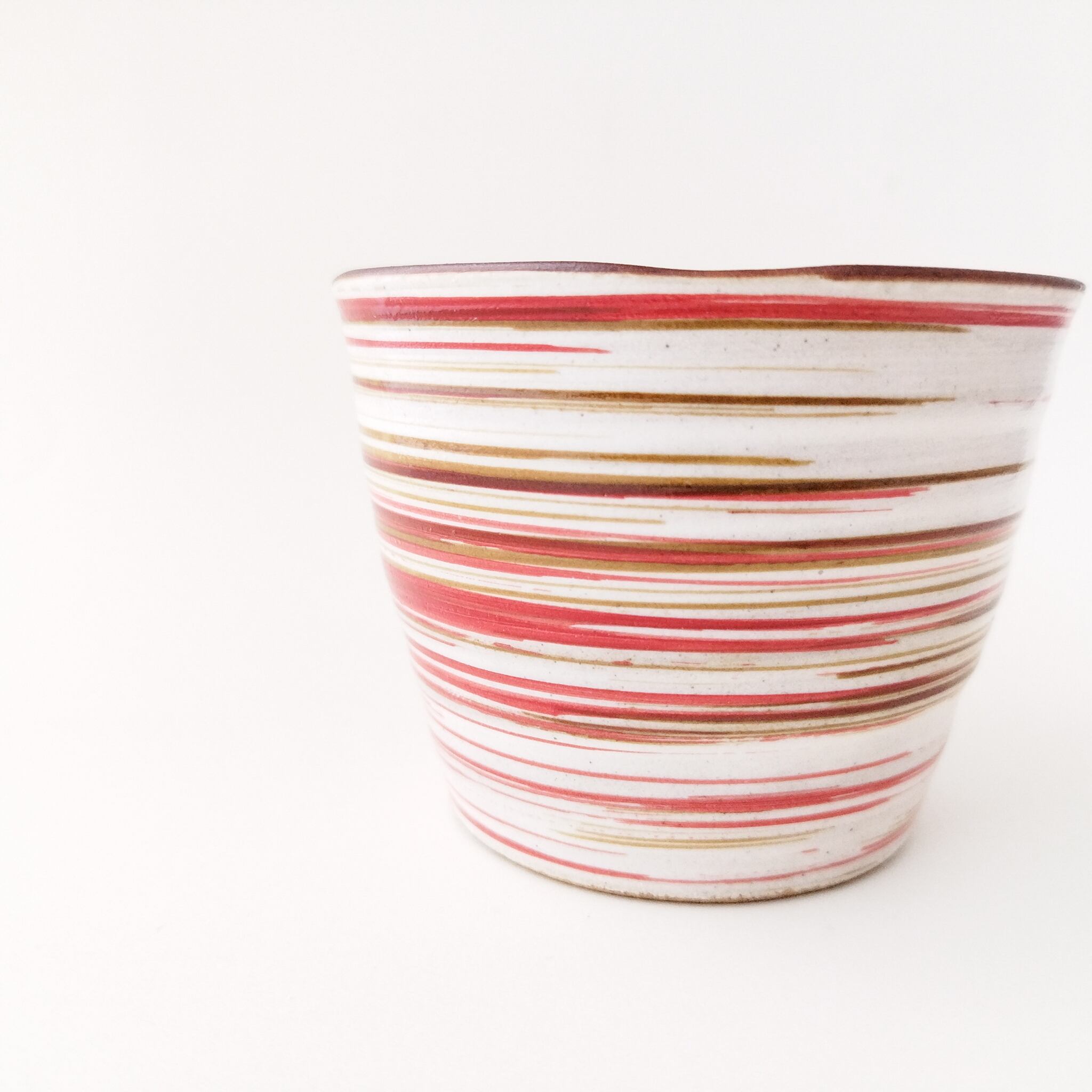 粉引の白化粧に赤い線が映えます。
