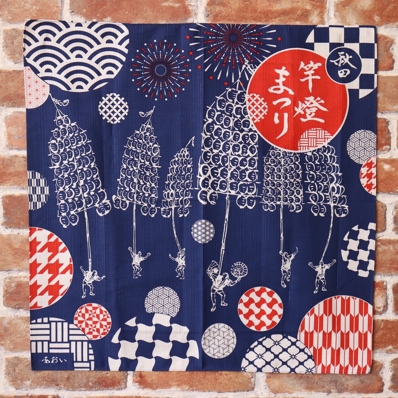 秋田の伝統「竿燈まつり」のそのままの光景を手ぬぐいに映し出しました。