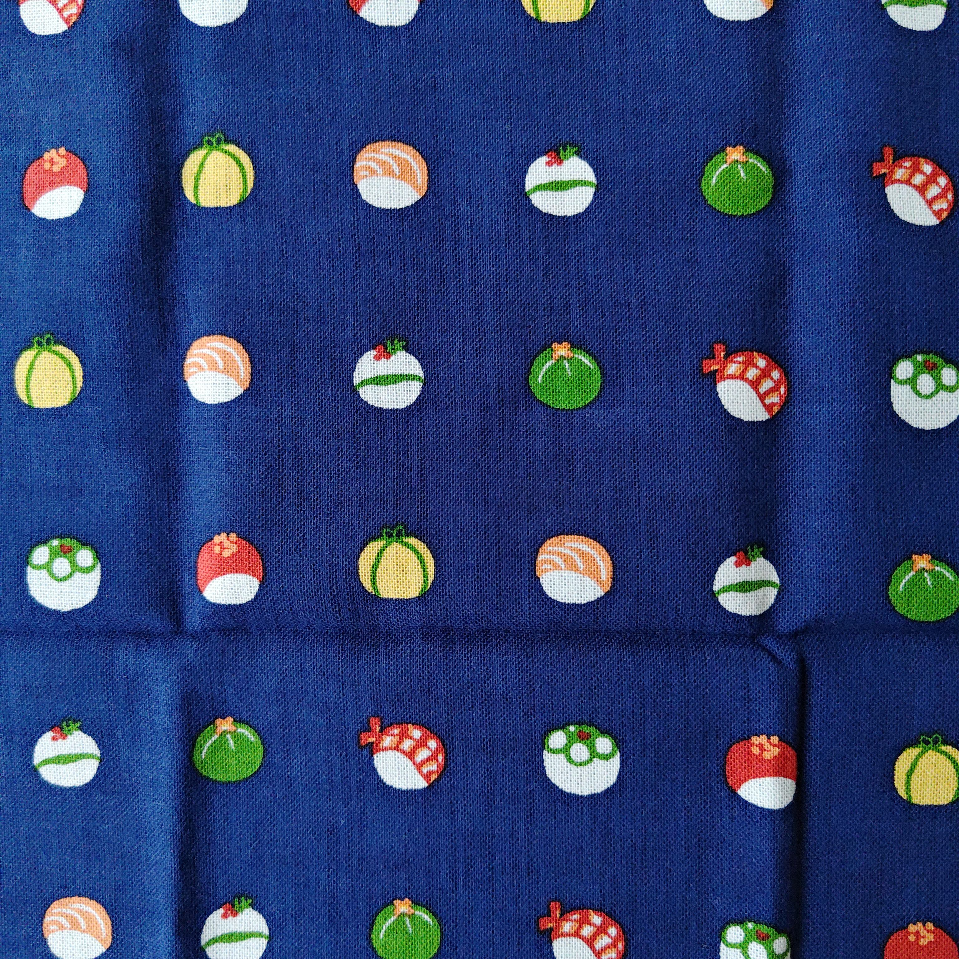 小さい手まり寿司がたくさん並んだ手ぬぐい。