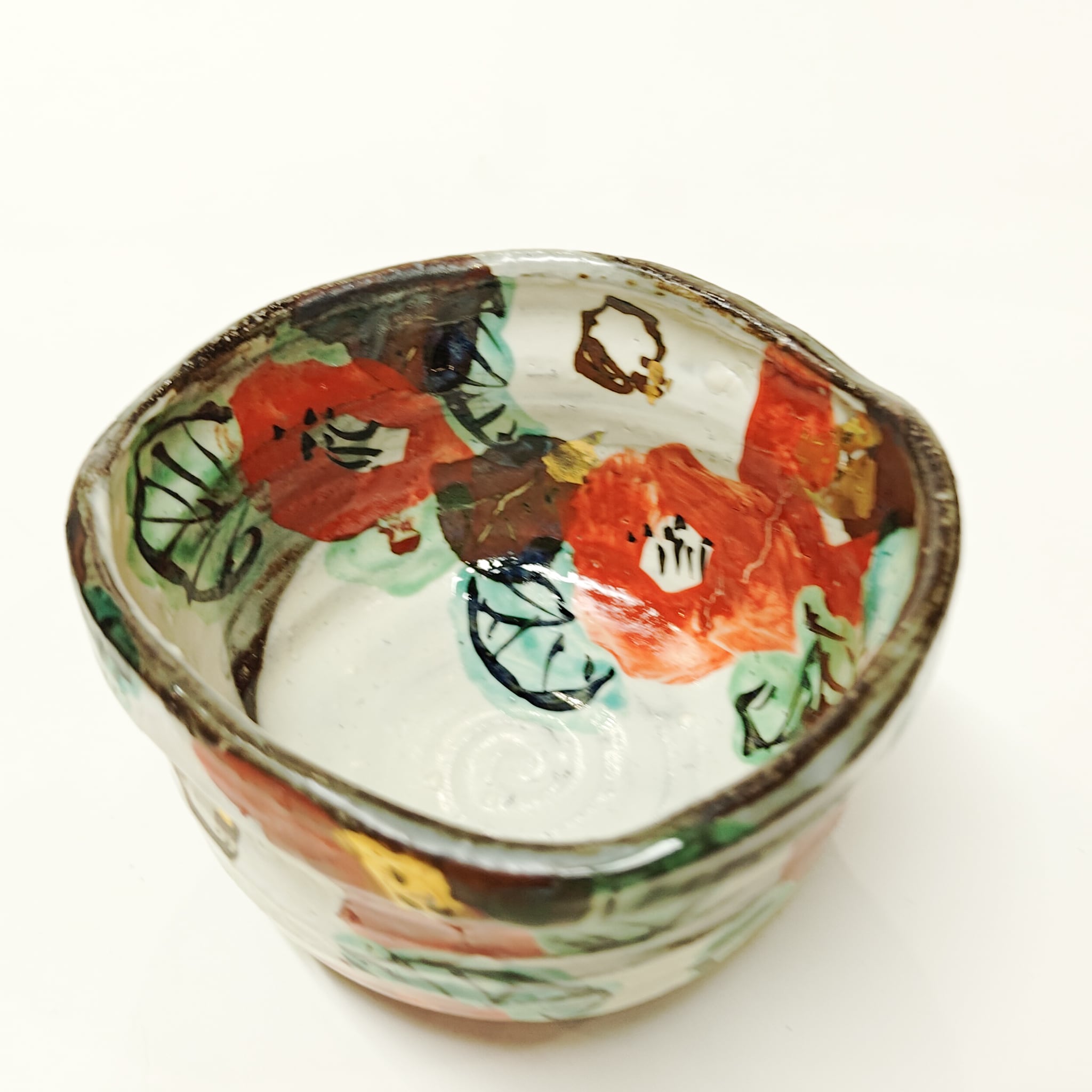 外側にまんべんなく見事な椿が描かれています。飾っても使っても、どんな場面でも椿が華やかさを演出してくれます。