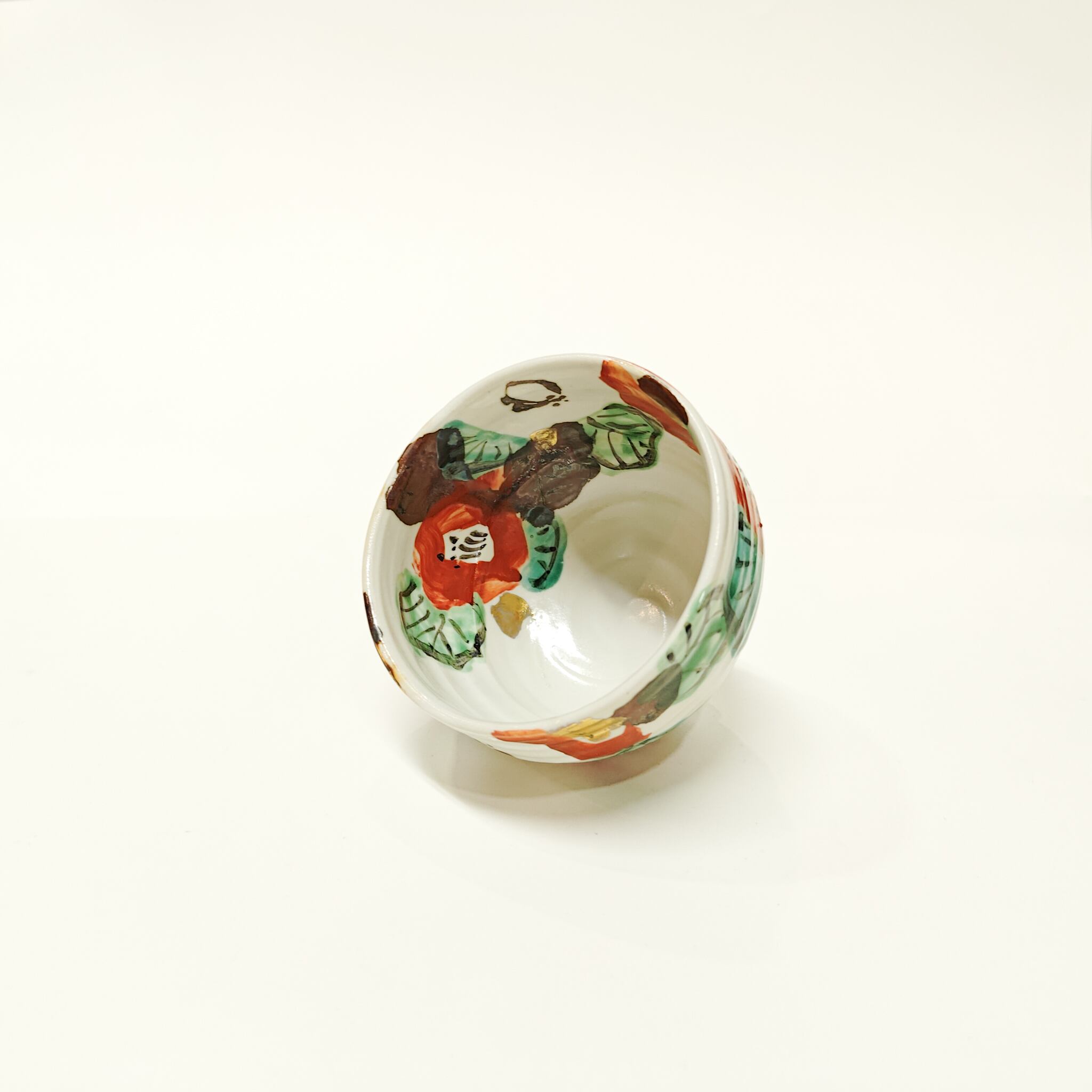 大胆に描かれた赤と白の椿とその中にわずかに散らしてある金色が、日常使いできる食器でありながらほのかな優雅さを演出してくれます。